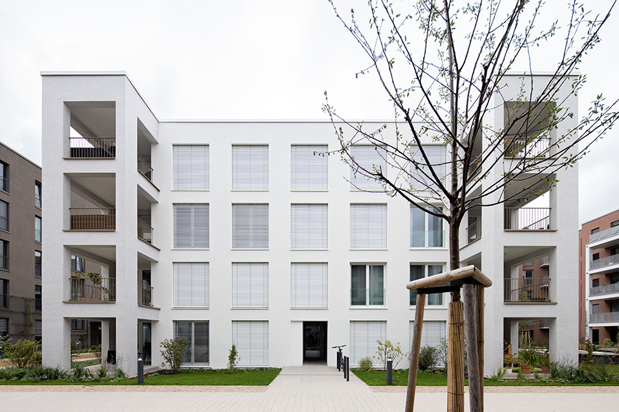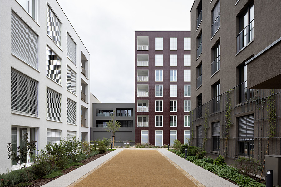 Auf dem innerstädtischen Areal eines ehemaligen Emaillierwerks entsteht ein neues Stadtquartier. Es sind 800 Wohnungen, Gewerbeflächen, Kindertagesstätte und Ausstellungsraum geplant. Der Städtebau bildet 7 Hofstrukturen aus, die um eine gemeinsame grüne Quartiersmitte angeordnet werden. Der erste Bauabschnitt sieht die Erstellung von 150 Wohneinheiten und kleinere Gewerbeflächen vor. Im Rahmen der Mehrfachbeauftragung sind Bilger Fellmeth verantwortlich für die Planung von fünf Gebäuden: Turmhaus, Torhaus, Maisonettzeile, Hofhaus und Pergola. Die Bauten leiten Form und Gestus aus ihrem jeweiligen Programm ab. Detaillierung, Material und Farbe prägen die Unterschiedlichkeit der Gebäude weiter aus. Es entsteht so im Quartier ein Dialog zwischen unterschiedlich anmutenden, dennoch doch im Wesen verwandten Wohnbauten. Die Verwendung glasierter Keramik als Fassadenbekleidung verweist auf die Herstellungsprozesse des vormaligen Emaillierwerks. Mehrfachbeauftragung mit Kuehn Malvezzi Florian Krieger - Architektur und Städtebau Bilger Fellmeth realisieren im ersten Bauabschnitt 9.200m² Bgf, 52 Wohnungen Fotografie Felix Krumbholz