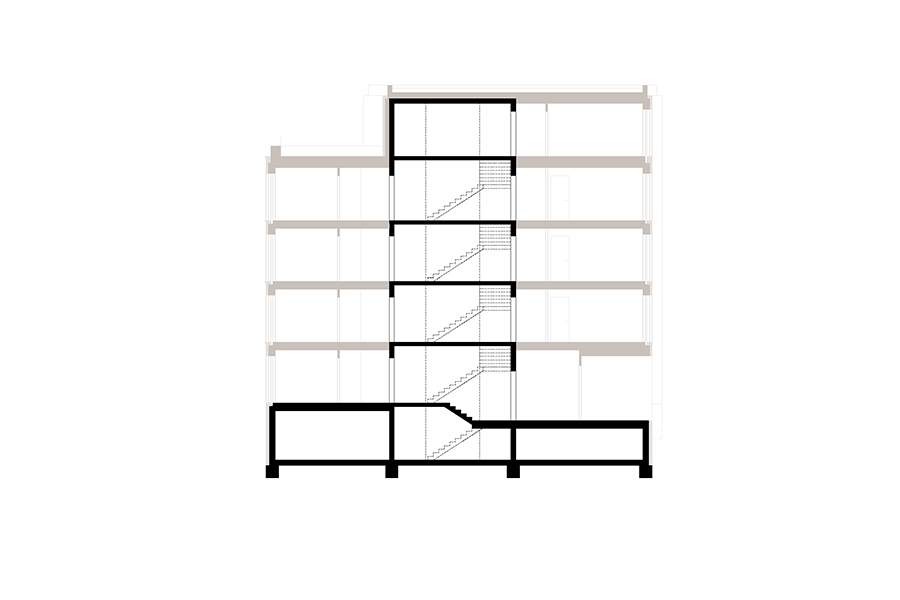 An der Promenade am Rand des geplanten BUGA Geländes entstehen zwei Wohnhäuser. Sie sind Teil eines Modellquartiers auf der Fläche der ehemaligen Spinelli Barracks. Die Häuser haben eine kompakte Kubatur und fügen sich in offener Bauweise in die Hauszeile an der Promenade ein. Die architektonische Erscheinung soll Verschiedenheit und Verwandschaft der beiden benachbarten Bauten zum Ausdruck bringen. Die Fügung der Loggienräume an den Hauptbaukörper, Rastermaße in der Holzverschalung, Material- und Farbwahl erzeugen die Verschiedenheit. Sockel, Dachabschluss und grundsätzliche Proportionsverhältnisse in der Fassade sind zueinander verwandt. Die hybride Bauweise ist Ergebnis eines intensiv geführten Planungsprozesses mit allen beteiligten Disziplinen. Die Mischkonstruktion aus Holz, Beton und Ausbauteilen wurde hinsichtlich Co2 Bilanz und Ökonomie genau austariert. 4.600 m² Bgf, 28 Wohneinheiten Wettbewerb 1.Preis, Baubeginn 2023